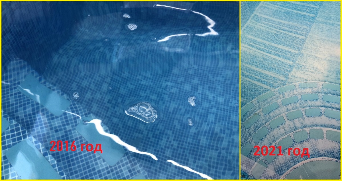 Композитные бассейны имеют значительно более длительный срок службы, чем бетонные чаши. Потому что пленка у бетонного бассейна выцветает от хлора и ультрафиолета за 4-7 лет. Только представьте себе: Вы вложились и построили бассейн из бетона, а в среднем через пять лет наступает необходимость замены пленки всего бассейна!